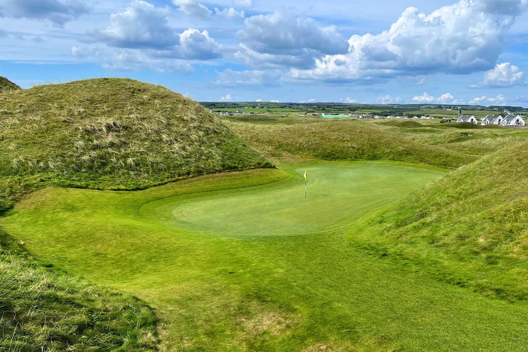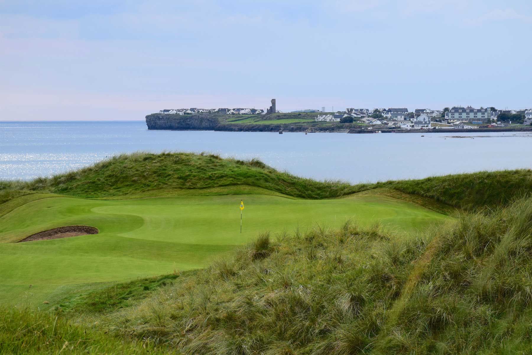 Der Lahinch Golf Club liegt 50 km vom Flughafen Shannon im County Clare und wurde schon oft als das "St Andrews Irlands" beschrieben. Es ist ein traditioneller Linksplatz, der an der Atlantikküste entlang hin- und zurückführt und bei vielen Golfbesuchern, die Jahr für Jahr auf die Grüne Insel strömen, sehr beliebt ist. Während der "Old Course" etwa 6125 m misst, ist der "Castle Course" mit nur etwa 5120 m sehr viel kürzer. Jedoch ist der Par 70 Platz kein Kinderspiel und Sie müssen gut in Form sein, um ein gutes Ergebnis zu erreichen. Besucher sind die ganze Woche auf beiden Plätzen herzlich willkommen und Caddies stehen auf Nachfrage zu Verfügung.